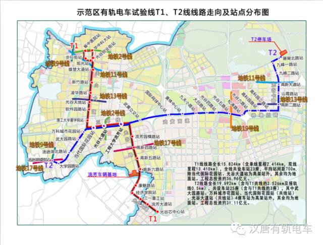 Modern tramcar T1 and T2 example line is total 34.7 kilometers and total investment 6.8 billion yuan .Example line adopt “BT+PPP” innovative investment and financing construction mode , this mode will cut down construction time and when running , it will relieve the government investment pressure . T1 and T2 line will pass by valley walking street , guanshan road , third circle line ,WTA international tennis center , valley central city , biolake , future science and technology city will also cover valley development core zone , southward along university road will reach to Tangxun lake station , along valley first road will reach to Fozuling liufang district .